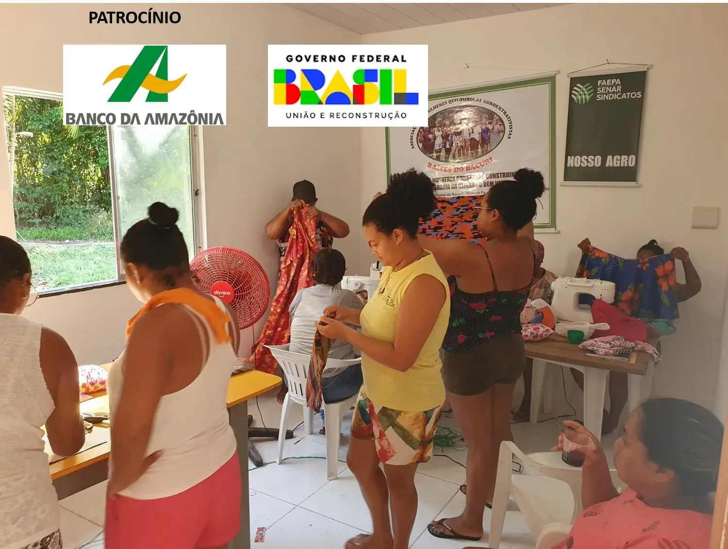 Com essa ação pretende-se potencializar uma atividade já desenvolvida pela associação no projeto, roupas, roupas íntimas, bolsas, e adereços que fortaleçam a identidade étnica do povo quilombola com estamparias de tecidos produzidos pelas participantes do projeto.